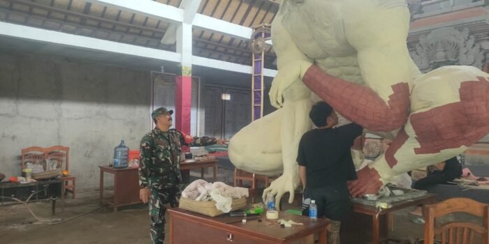Babinsa Desa Tiga Memantau Pembuatan Ogoh-ogoh Menjelang Hari Raya Nyepi
