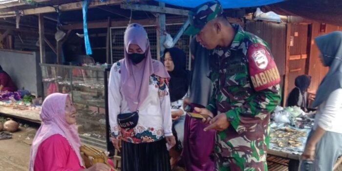 Sertu Isman Koramil 01/Panca Lautang Lakukan Pengecekan Harga Sembako di Pasar Sentral Bilokka