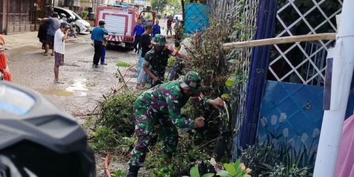 SIDRAP – Dalam rangka menjaga kebersihan lingkungan dan mencegah genangan air saat musim hujan, anggota Koramil 1420-06/Panca Rijang bersama warga Kelurahan Rappang
