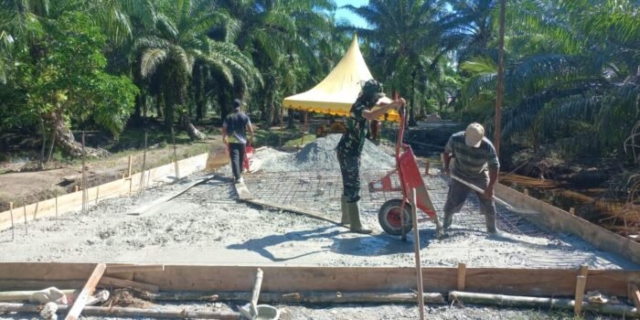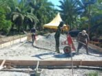 Nagan Raya – TNI terus melaksanakan Pengecoran Lantai yang sebelumnya di pasang dengan menggunakan besi yang sudah di rangkai agar lebih kuat yang