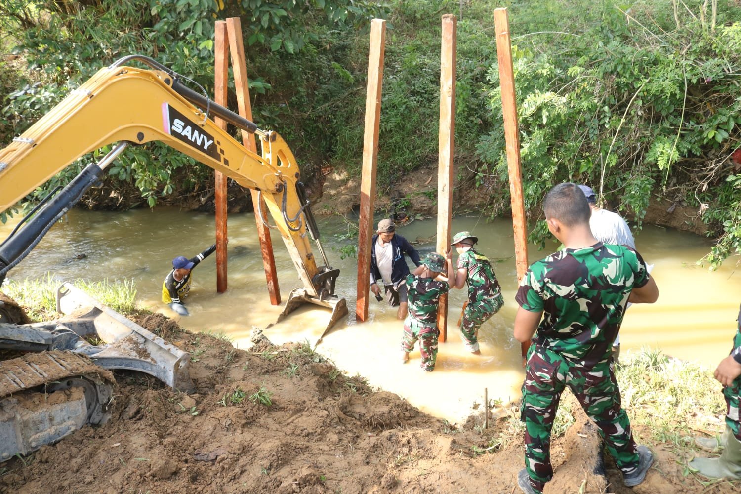 KUTAI TIMUR – Akses warga Desa Suka Rahmat menuju lahan pertanian dan wilayah sekitarnya kini semakin terbuka dan dipermudah. Hal ini terjadi berkat pembangunan jembatan penghubung yang dilakukan oleh Satgas TNI Manunggal Membangun Desa (TMMD) Ke-125 Kodim 0909/Kutai Timur, yang kini telah memasuki tahap penanaman tiang pancang pada Selasa (29/7/2025).
