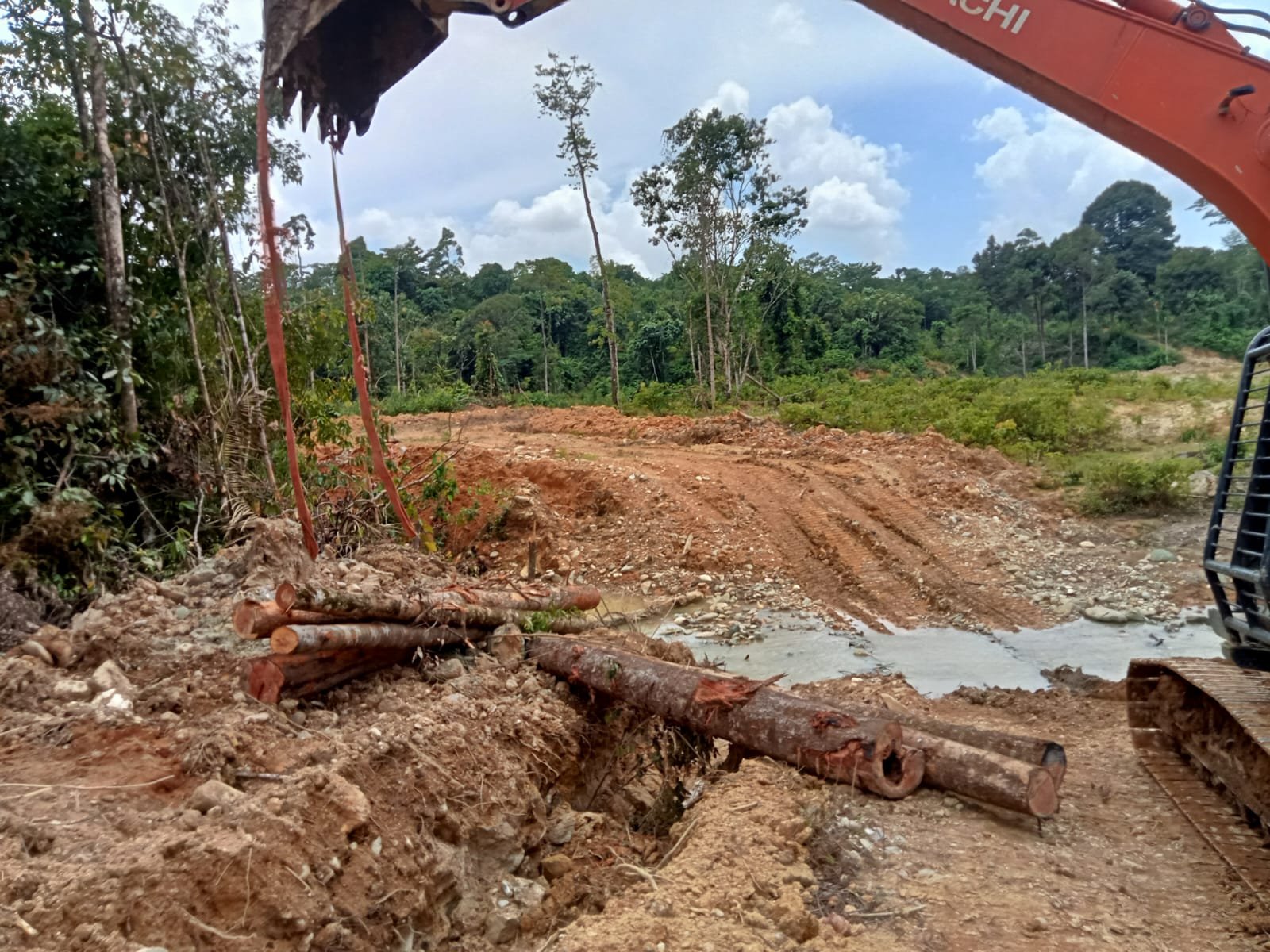Pemandangan alat berat yang bekerja di tengah alam menjadi simbol gotong royong antara manusia dan alam. Tanah, kayu, dan tenaga manusia berpadu menjadi solusi nyata bagi kebutuhan masyarakat.