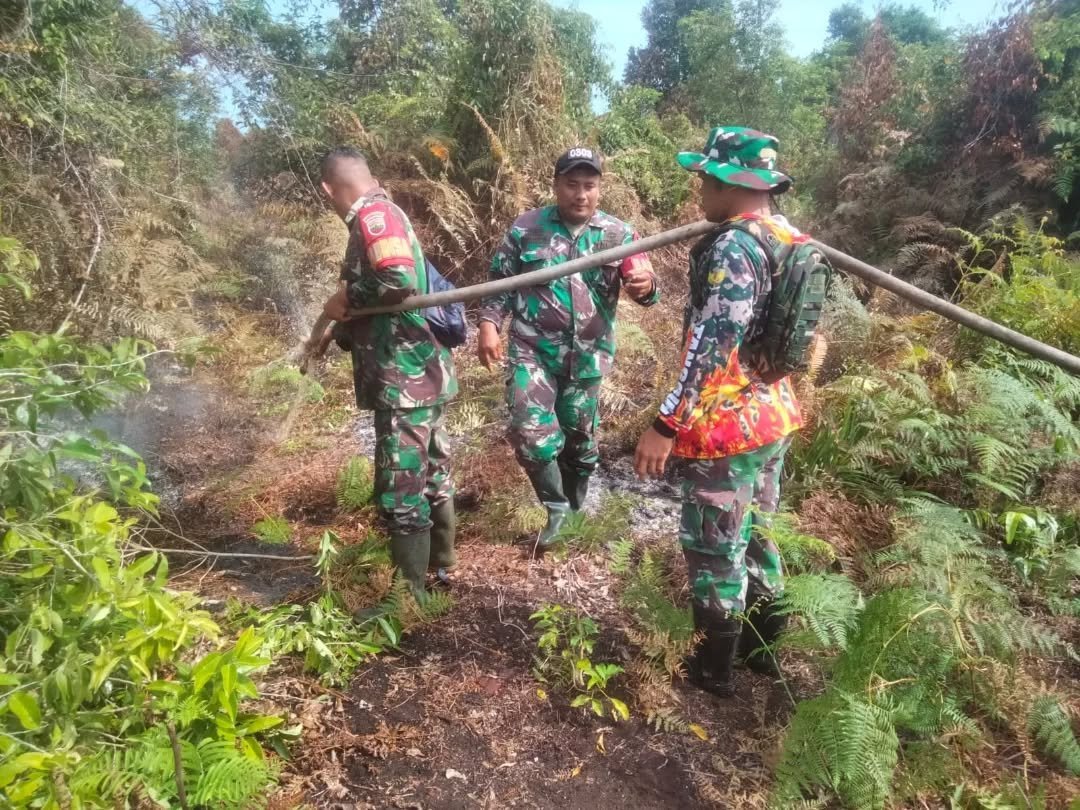 Anggota Koramil 0303-01/Bengkalis Lakukan Pendinginan Titik Api di Desa Sungai Alam