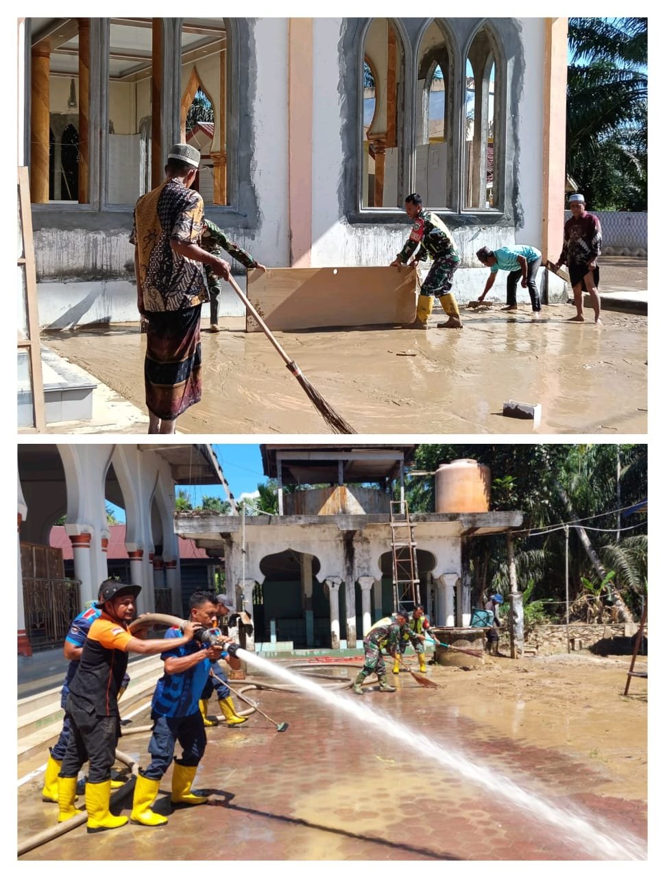 Aksi pembersihan ini menjadi bukti nyata kepedulian TNI terhadap masyarakat, khususnya dalam membantu pemulihan fasilitas umum dan tempat ibadah pasca bencana. Para personel Koramil bersama warga bahu-membahu mengangkat lumpur, membersihkan halaman, serta menata bagian dalam masjid agar dapat kembali digunakan untuk kegiatan ibadah.