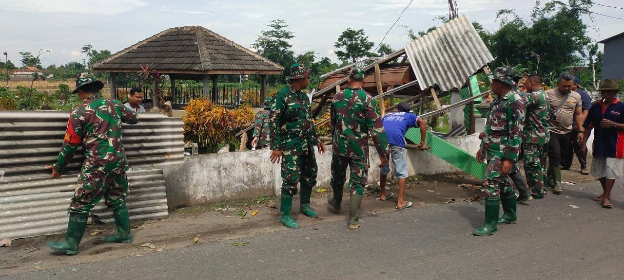 Anggota Koramil 0814-05/Perak Tanggapi Cepat Bencana Angin Puting Beliung di Pucangsimo