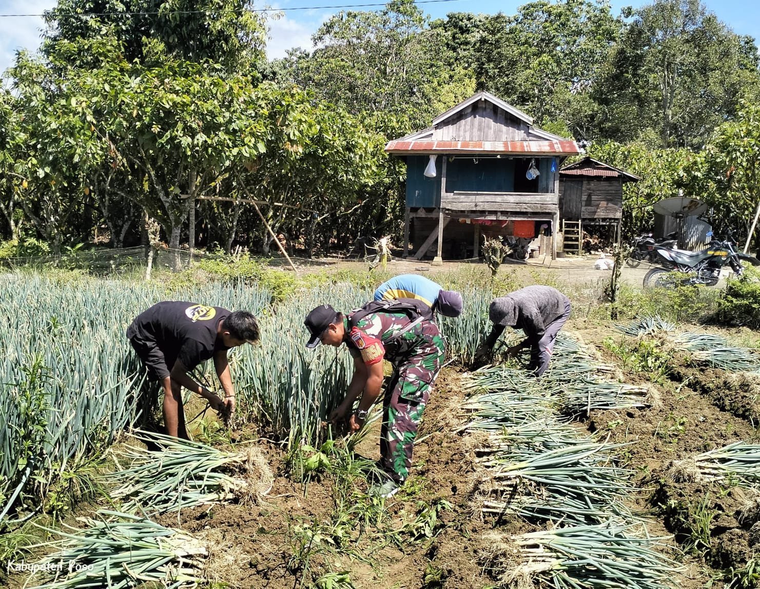 Kodim Poso, – Koptu Yayan, anggota Koramil 1307-10/Lore Utara melaksanakan pendampingan ketahanan pangan dengan fokus pada jenis tanaman bawang daun. Kegiatan ini dilaksanakan di Desa Alitupu, Kec. Lore Utara, Kab. Poso, dengan tujuan untuk mendorong semangat masyarakat dalam memanfaatkan lahan tidur agar menjadi lahan produktif. Minggu, (12/1/2025).
