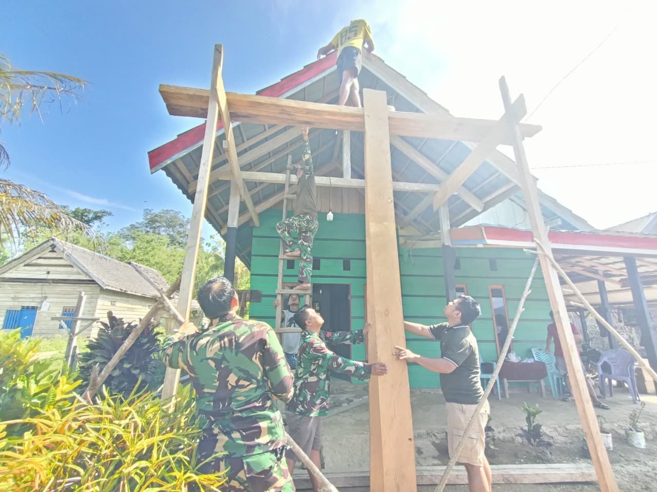 Anggota Satgas Lakukan Pengecatan Rumah Warga Tempat Mereka Tinggal Selama Tugas TMMD 126