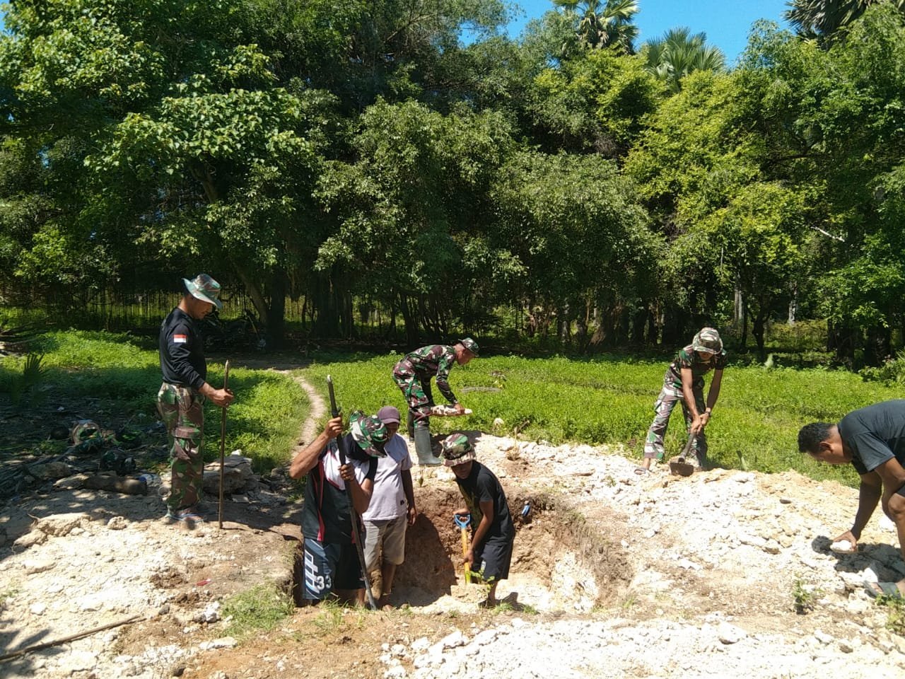 “Kami targetkan penggalian lubang Septi tank dan cor Septi tank ini selesai akan berlanjut ke pengecoran tiang bangunan dan pemasangan atap dengan menggunakan seng” jelas Sertu M. Jaini.
