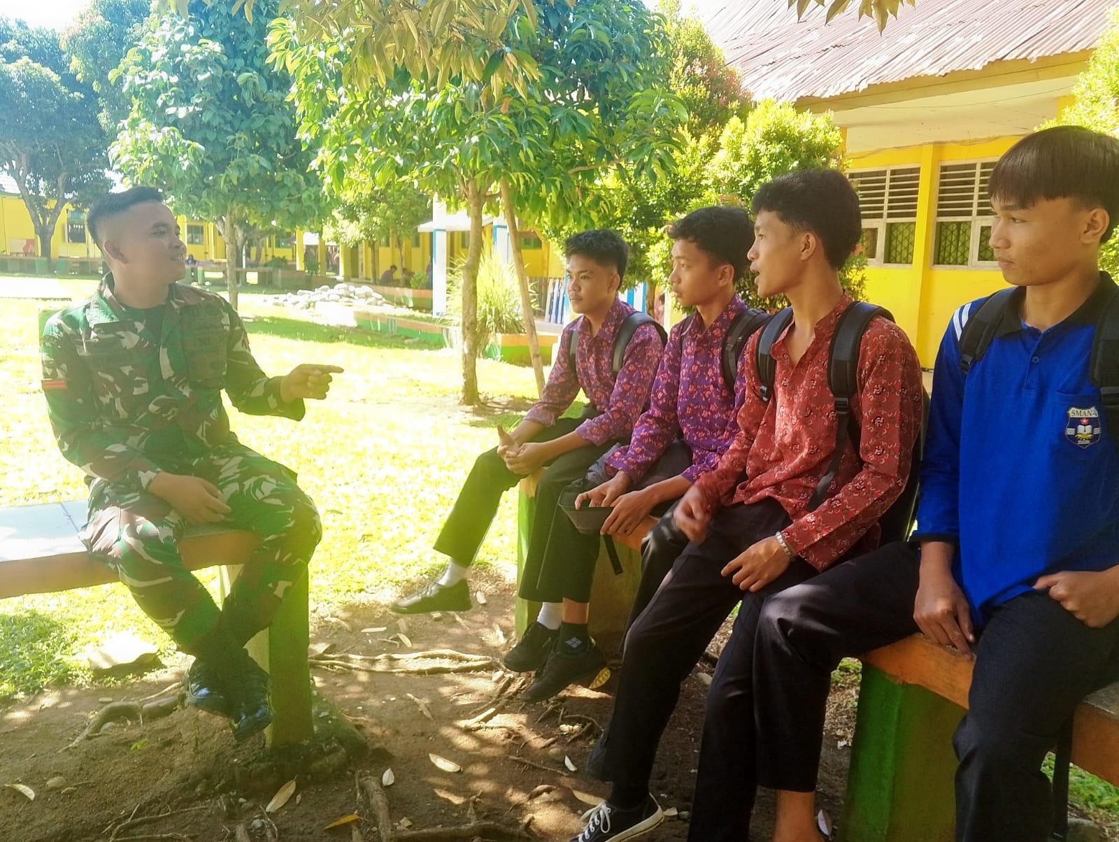 Kedatangan anggota TNI ini, disambut baik oleh para dewan guru.Banyak hal di bicarakan dalam komsos tersebut Dari masalah kenakalan remaja, bahaya nakoba dan masalah wawasan kebangsaan, dan Tawuran.