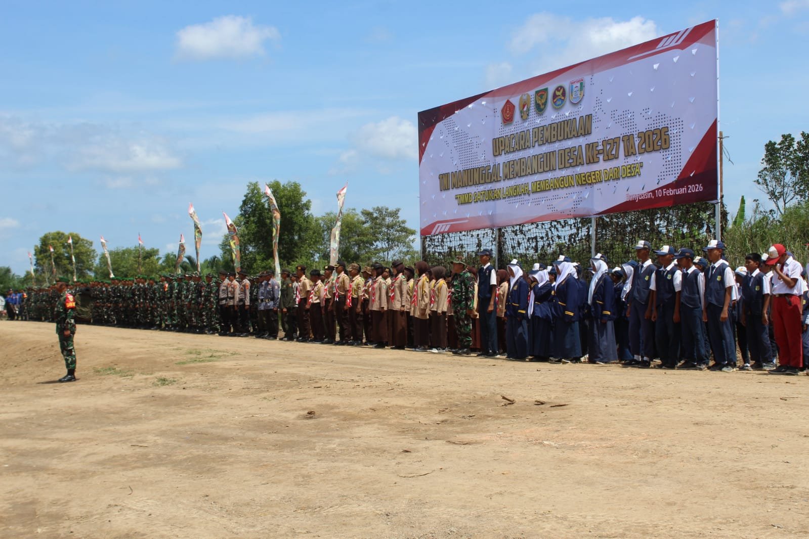 Banyak pihak turut hadir dalam upacara pembukaan, termasuk pejabat dari TNI, Polri, pemerintah daerah, serta tokoh masyarakat dan pemuda setempat. Kehadiran mereka menandakan dukungan yang kuat terhadap program pembangunan desa ini.