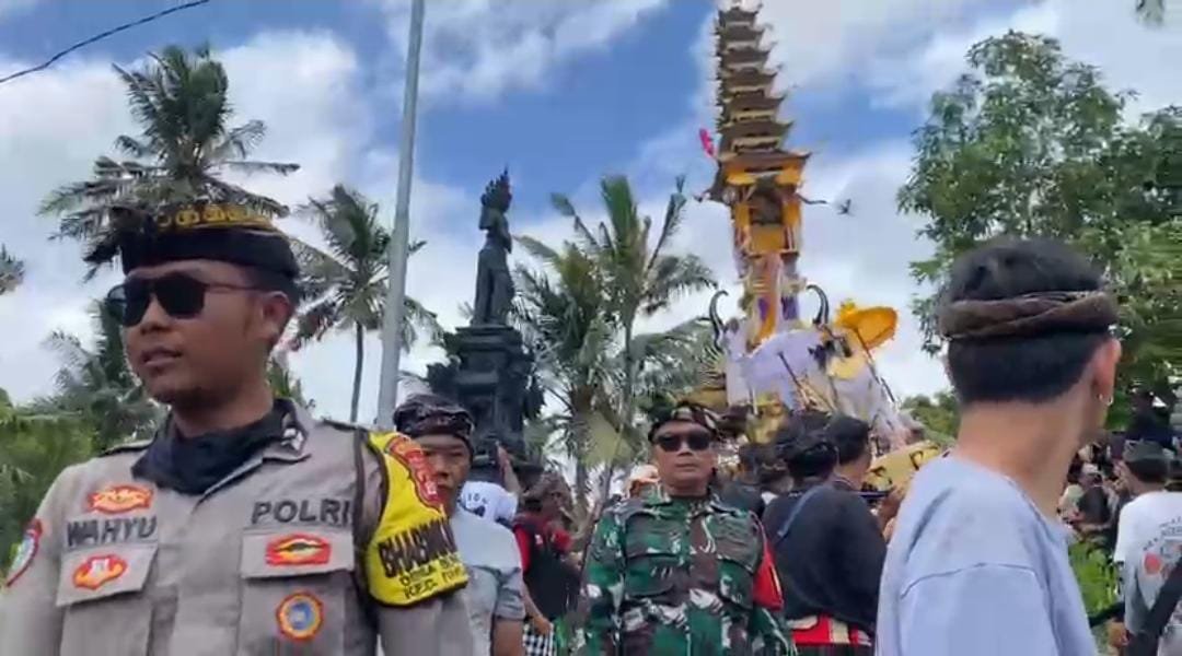Upacara yang dihadiri oleh ratusan warga dan diwarnai dengan arak-arakan Bade tumpang pitu itupun tak luput dari pengawalan dan pengamanan ketat Babinsa, Bhabinkamtibmas dan pecalang.