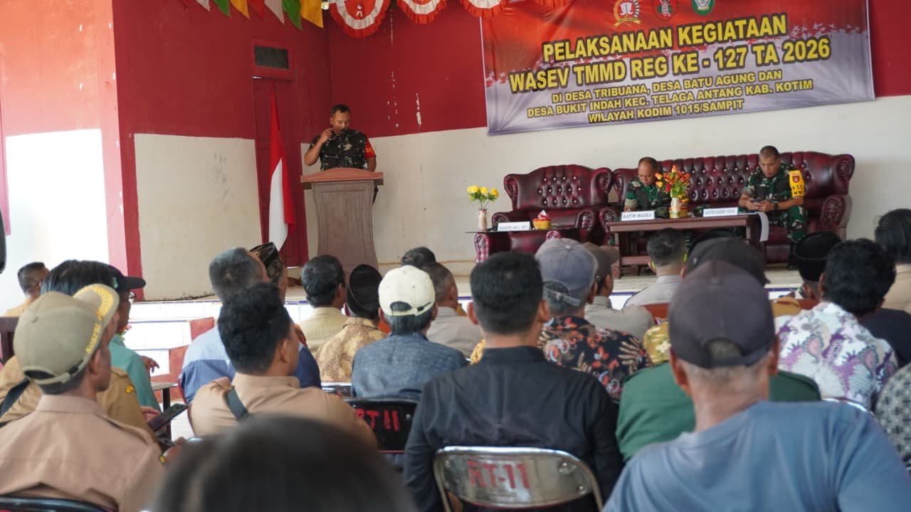 Kotawaringin Timur – Ketua Tim Wasev Mabes Angkatan Darat, Brigjen TNI Totok Sulistiyono, memberikan apresiasi terhadap kemajuan pelaksanaan Program TNI Manunggal Membangun Desa (TMMD) ke-127 yang diselenggarakan oleh Kodim 1015/Sampit. Kunjungan kerja tersebut berlangsung di Desa Tri Buana pada Selasa, 3 Maret 2026.