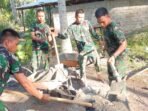ACEH BARAT – Babinsa Posramil 06 Bubon Kodim 0105/Aceh Barat, Sertu Endi Suhendi, membantu membuat rumah warga binaan di Desa Liceh, Kecamatan
