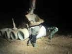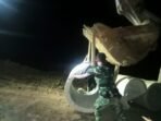 Prajurit TNI Manfaatkan Waktu Sejuk Malam Untuk Pekerjaan Berat