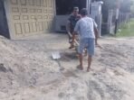 ACEH JAYA – Babinsa Koramil 05/Panga Kodim 0114/Aceh Jaya, Serka Faisal, terlihat aktif mendampingi warga dalam kegiatan pembangunan toko di Desa Twi