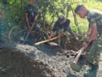 Aceh Barat – Terik matahari dan medan menantang bukan alasan untuk berhenti. Personel Satgas TMMD Reguler ke-127 Kodim 0105/Abar terus melanjutkan pengecoran