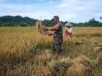 Babinsa Darul Hikmah Turun ke Sawah Bantu Panen Padi Petani