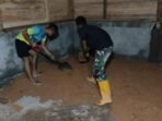 Kebersamaan TNI dan Warga Petoaha dalam Membangun RTLH di Malam Hari