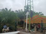 Banyuasin – Anggota Satgas TMMD ke-127 dari Kodim 0430/Banyuasin sedang mempercepat proses pembangunan sumur bor titik ketiga yang terletak di belakang Kantor