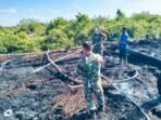 ACEH BARAT – Danramil 03 Kaway XVI, Kapten Inf Khairul Zaen, S.H., mengerahkan anggota Koramil untuk membantu memadamkan kebakaran lahan perkebunan warga