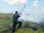 HULU SUNGAI SELATAN – Sigap dan tanggap Bintara Pembina Desa (Babinsa) bersama tim penanggulangan bencana Kebakaran Hutan dan Lahan (Karhutla) dengan Gerak