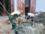 ACEH BARAT – Sertu Ruswandi, Babinsa Posramil 12/Panton Reu Kodim 0105/Aceh Barat, melaksanakan kegiatan karya bakti dengan membantu warga binaan dalam pembangunan
