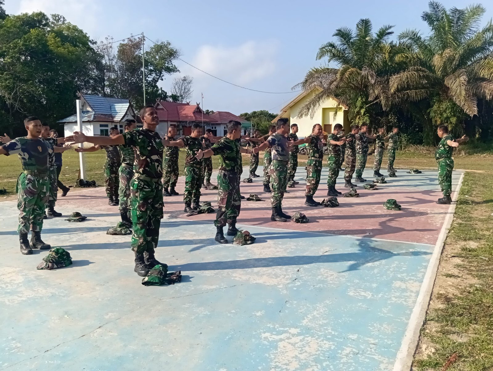 Dengan dipandu oleh salah satu personel yang bertindak sebagai instruktur, seluruh anggota Satgas terlihat antusias mengikuti gerakan senam secara serempak. Suasana penuh semangat dan kekompakan menjadi pemandangan tersendiri sebelum mereka terjun ke lapangan melaksanakan berbagai sasaran fisik dan nonfisik.
