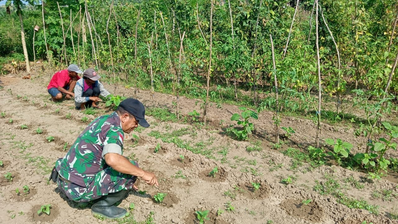 NTT-KEFAMENANU, 17 April 2025, Babinsa Koramil 1618-02/ Miobar Serka Sani Maeques melaksanakan kegiatan Monitoring wilayah binaan dan Pendampingan Petani Tomat milik Bapak Mikhael Funan yang bertempat di Desa Bijaepasu, Kecamatan Mioteng, Kabupaten TTU.