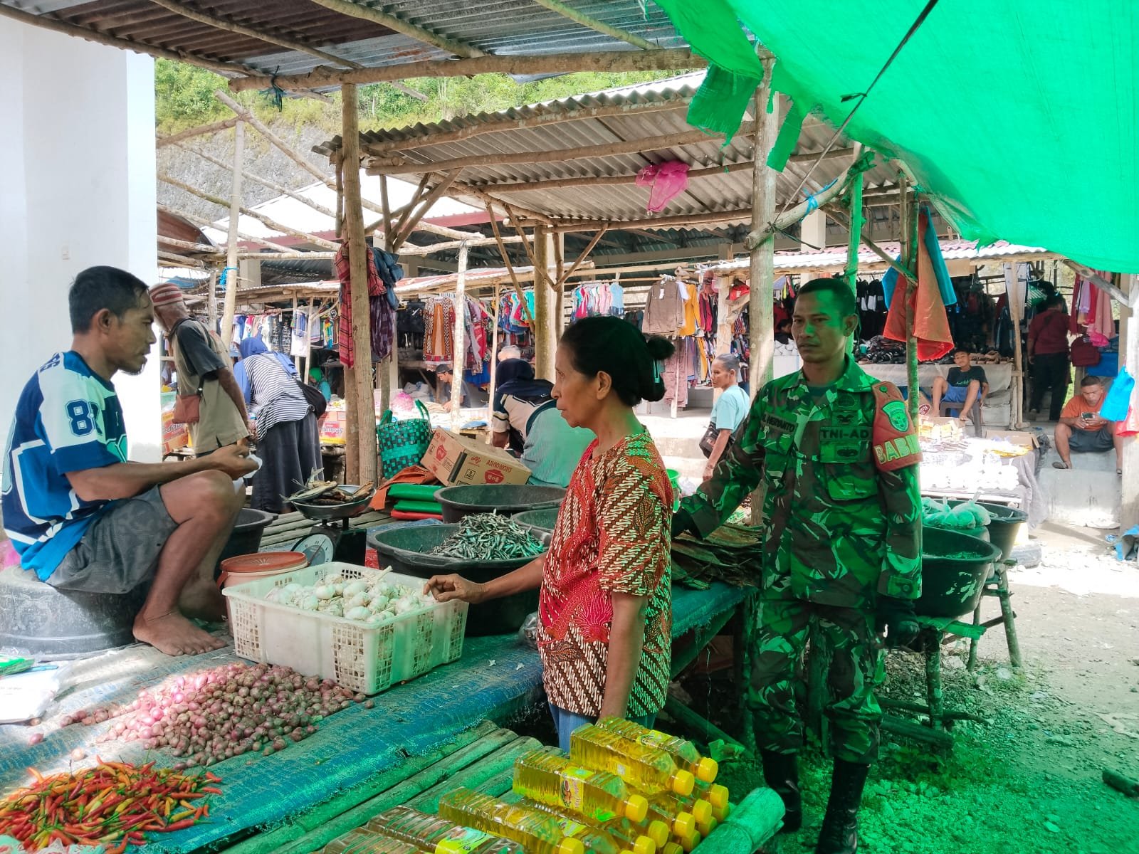 SUMBA BARAT – Sertu Husni Haryanto, Babinsa dari Koramil 01/Loli Kodim 1613/Sumba Barat, mengunjungi Pasar Karekanduku di Kecamatan Tanarighu, Kabupaten Sumba Barat, pada Selasa (17/02/2026). Kegiatan ini dilakukan sebagai bagian dari upaya membangun komunikasi yang baik dengan masyarakat, terutama para pedagang di pasar.