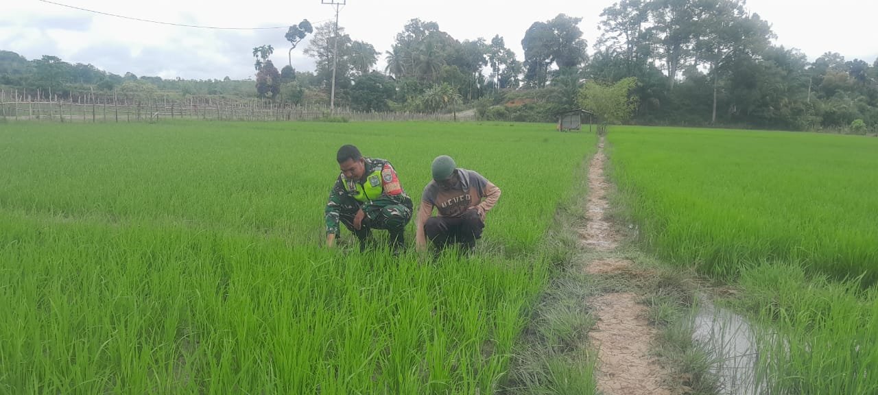 Kegiatan ini berlangsung di lahan pertanian milik kelompok tani di Desa Lubuk Panyang Kecamatan Woyla Timur. Serda Yusfendi bersama petani melakukan pengecekan langsung terhadap kondisi tanaman padi yang telah memasuki masa pertumbuhan vegetatif.