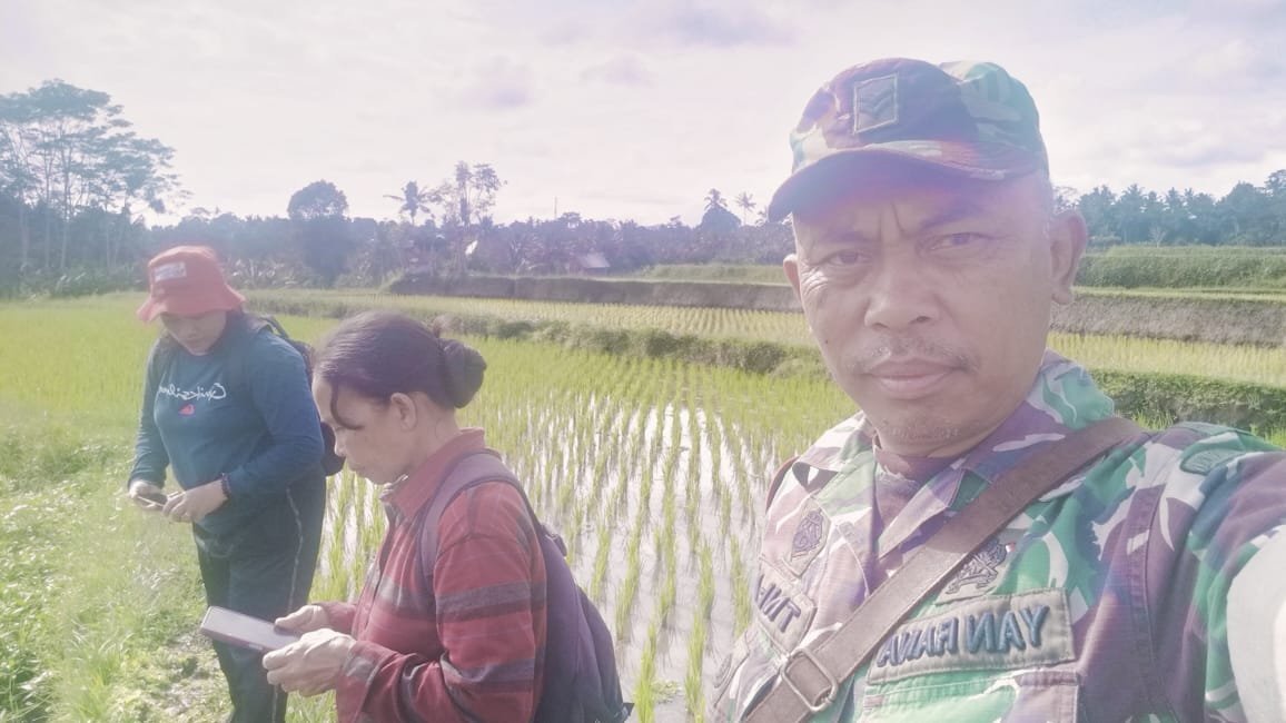 Bangli – Anggota Babinsa Koramil 02/Susut Kodim 1626/Bangli, Sertu I Wayan Rana, melaksanakan pemantauan perkembangan padi dan pengecekan hama padi di lahan sawah subak Pengiangan Kangin Desa Pengiangan, Kecamatan Susut, Kabupaten Bangli. Kegiatan ini merupakan bagian dari pendampingan yang dilakukan Babinsa sebagai bagian dari tugas pokok Satgas pertanian dalam peningkatan swasembada pangan.