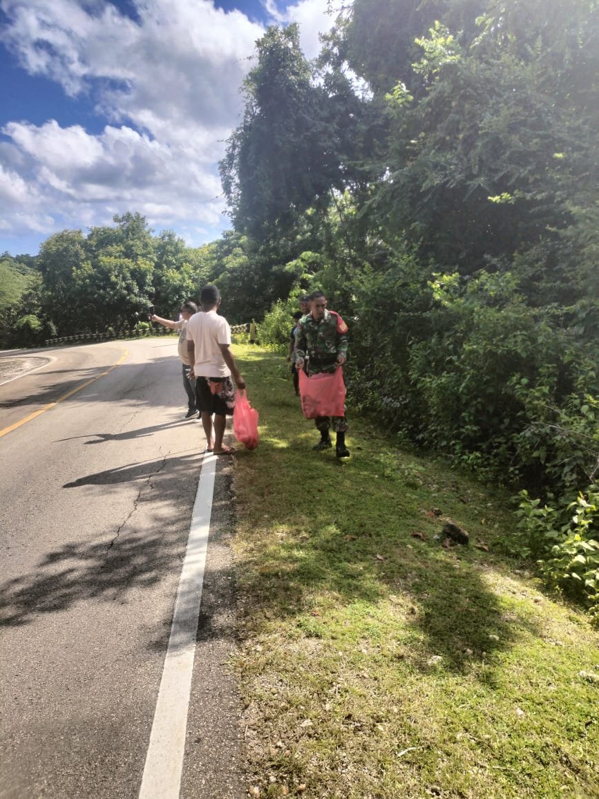 NTT Rote Ndao – Koptu Mesak Foeh Babinsa Koramil 02/Pantai Baru Kodim 1627/Rote Ndao bersama Aparat desa dan warga gotong royong bersihkan lingkungan bertempat di Desa Ofallanga kecamatan Pantai Baru Kabupaten Rote Ndao, untuk saling peduli dan semangat bahu – membahu bekerja sama dalam membersihkan lingkungan.
