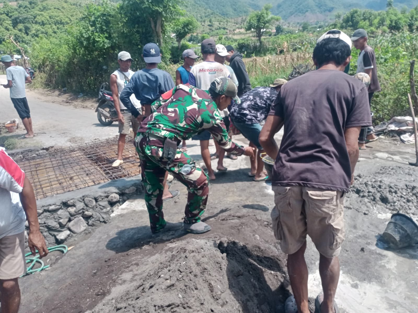 Dalam kegiatan tersebut, warga bersama Babinsa saling bahu-membahu melakukan pengecoran pada bagian-bagian jembatan yang kritis. Peralatan seperti semen, pasir, batu, dan air dipersiapkan dengan penuh semangat oleh masyarakat setempat. Meskipun kondisi cuaca cukup panas, semangat gotong royong tidak surut. Warga menyadari pentingnya jembatan ini bagi kelangsungan hidup desa, sehingga semua pihak berkontribusi aktif dalam perbaikan.