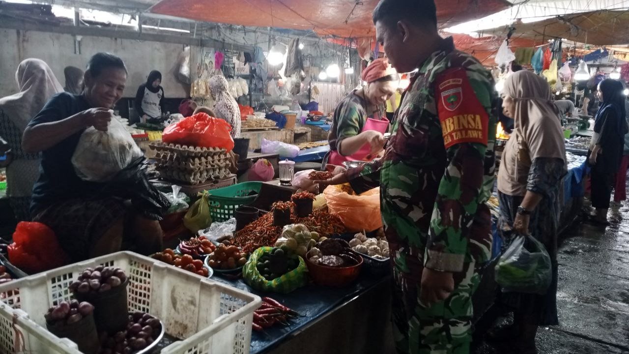 Kami turun langsung ke lapangan untuk memantau situasi harga sembako, serta memastikan tidak terjadi lonjakan harga yang memberatkan masyarakat. Selain itu, kami juga mendengar langsung keluhan atau masukan dari pedagang,” ujar Babinsa Serda m. Ali Hanapi.