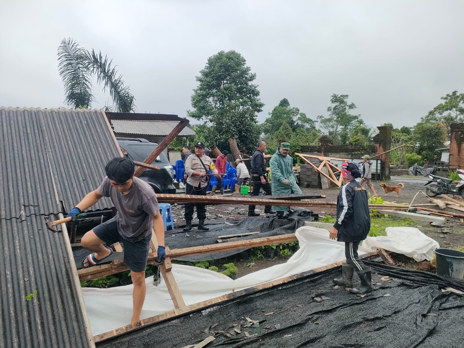 Bangli – Pelda I Nengah Wendra sebagai Babinsa desa, bersama Aiptu I Dewa Made Muliarta selaku Bhabinkamtibmas Desa Tiga, melakukan pemantauan dan pengecekan lokasi rumah warga yang roboh di Banjar Linjong, Desa Tiga, Kecamatan Susut, Kabupaten Bangli. Peristiwa ini terjadi pada pukul 21.00 WITA malam tadi, ketika hujan deras disertai angin kencang melanda wilayah tersebut.