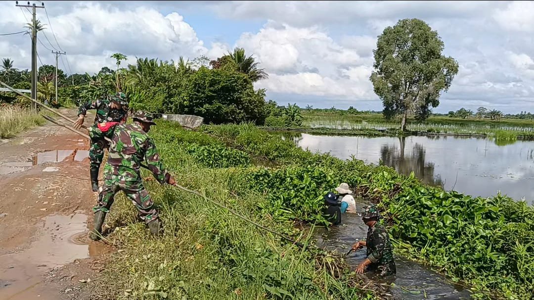 Pelda Mawardi Babinsa Koramil 1006-08/Gambur menyampaikan bahwa aksi gotong royong ini bertujuan untuk memperlancar aliran air ke area persawahan guna memenuhi kebutuhan irigasi bagi para petani di wilayah tersebut.