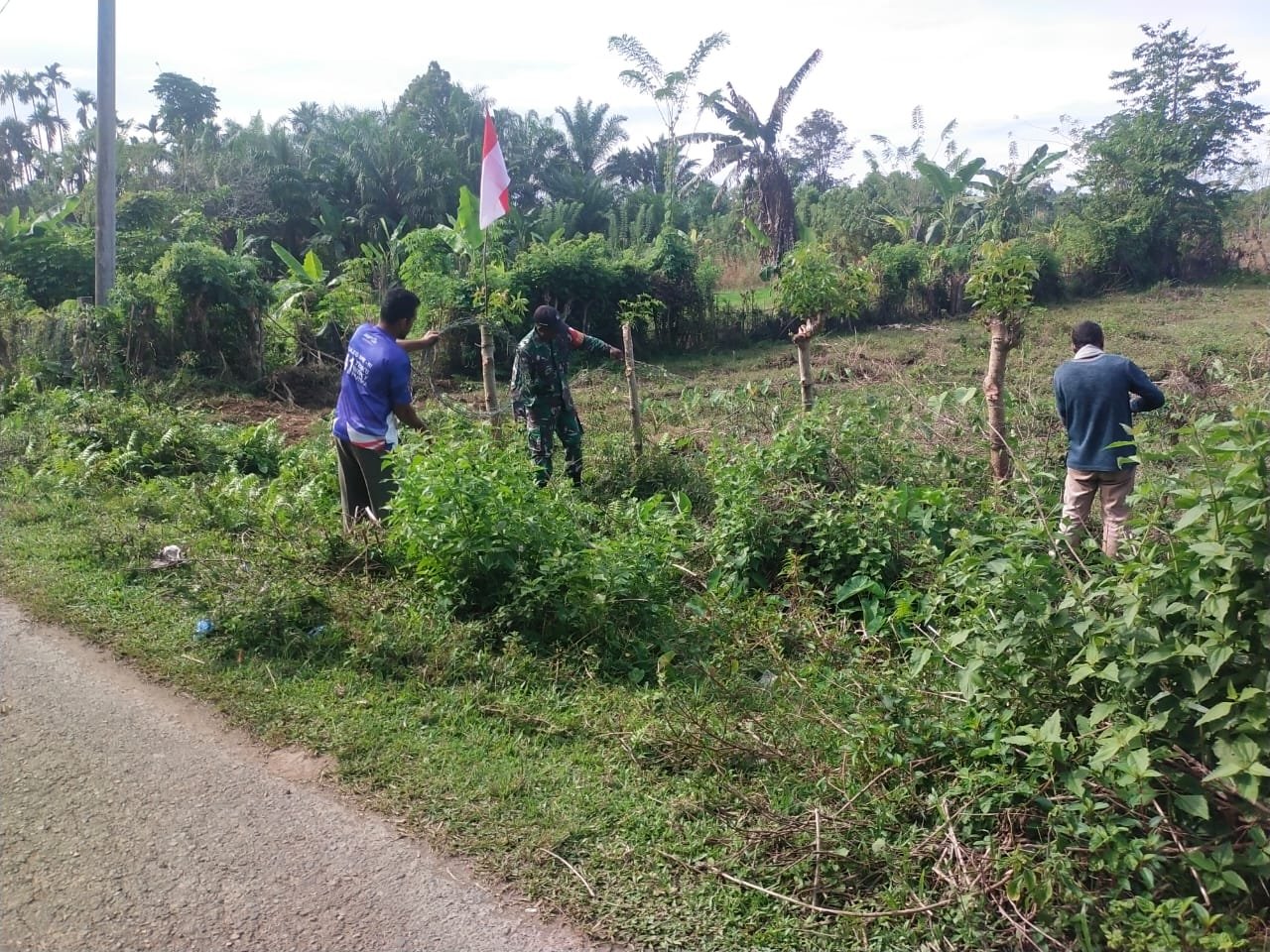 ACEH JAYA – Babinsa Posramil Darul Hikmah Kodim 0114/Aceh Jaya, Sertu Haslimin, melaksanakan kegiatan karya bakti bersama warga desa binaan di Gampong Cot Pange, Kecamatan Darul Hikmah, Kabupaten Aceh Jaya, Kamis (25/12/2025) pukul 10.00 WIB.