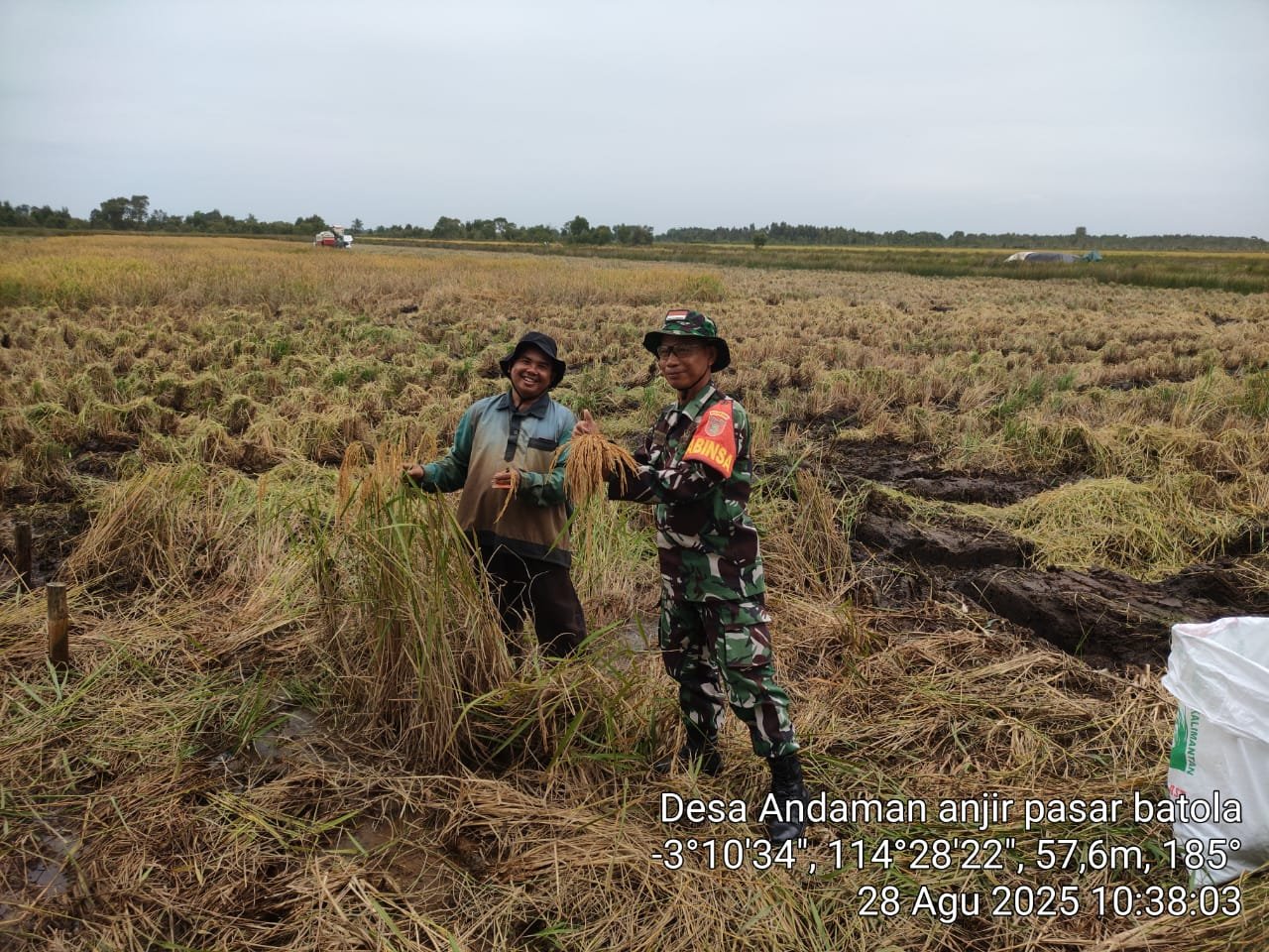 Barito Kuala, Kalimantan Selatan – Babinsa Koramil 1005-09/Anjir Pasar Serma Jenggu S, kembali menunjukkan kepeduliannya terhadap ketahanan pangan nasional dengan melaksanakan kegiatan pendampingan Luas Tambah Tanam (LTT) bersama para petani. Kegiatan ini dilaksanakan di Desa Andaman, Kecamatan Anjir Pasar, Kabupaten Barito Kuala, pada Kamis (28/08/2025).