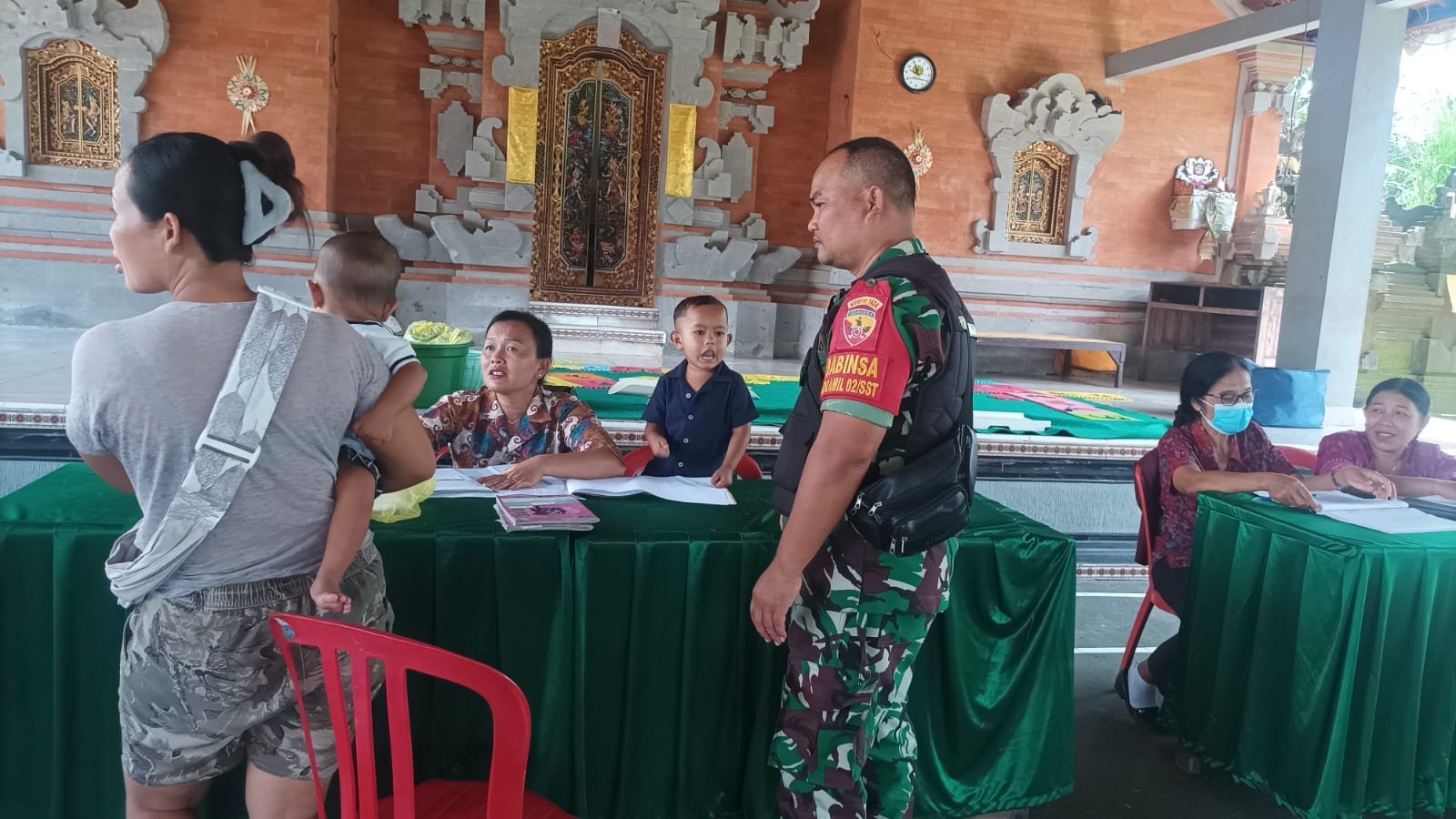 Bangli – Babinsa Desa Apuan, Koramil 1626-02/Susut, Serka Ketut Rediada melaksanakan pendampingan kegiatan Pelayanan Posyandu (Pos Pelayanan Terpadu) Balita serta pemberian makanan tambahan (PMT) kepada balita yang dilaksanakan di Balai Banjar Bangun Lemah Kangin, Desa Apuan, Kecamatan Susut, Kabupaten Bangli, Selasa (14/10/2025)