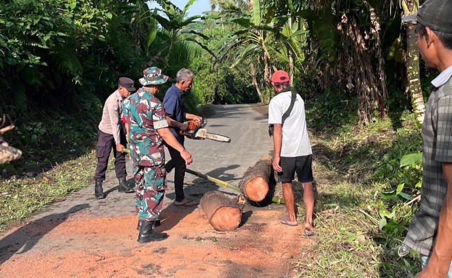 Babinsa Desa Bunutin Gelar Gotong Royong Bersama Warga Untuk Perkuat Persatuan Dan Antisipasi Cuaca Ekstrim