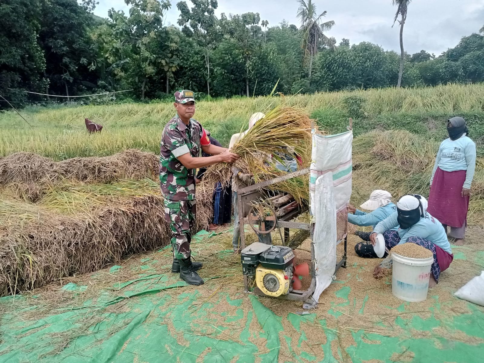 Sementara itu, Sertu Mastudinur setempat menyebut bahwa kegiatan pendampingan panen ini adalah dalam rangka membantu meringankan petani dalam rangka mensukseskan swasembada pangan.