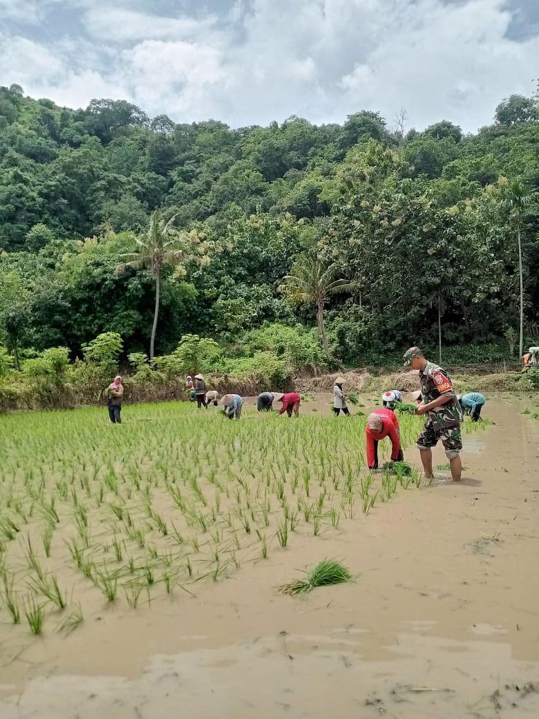 “Ini sudah merupakan tugas kami sebagai aparatur kewilayahan membantu para petani dalam hal pertanian, seperti kegiatan tanam padi yang sedang saya kerjakan merupakan wujud kemanunggalan TNI- Rakyat,” tuturnya