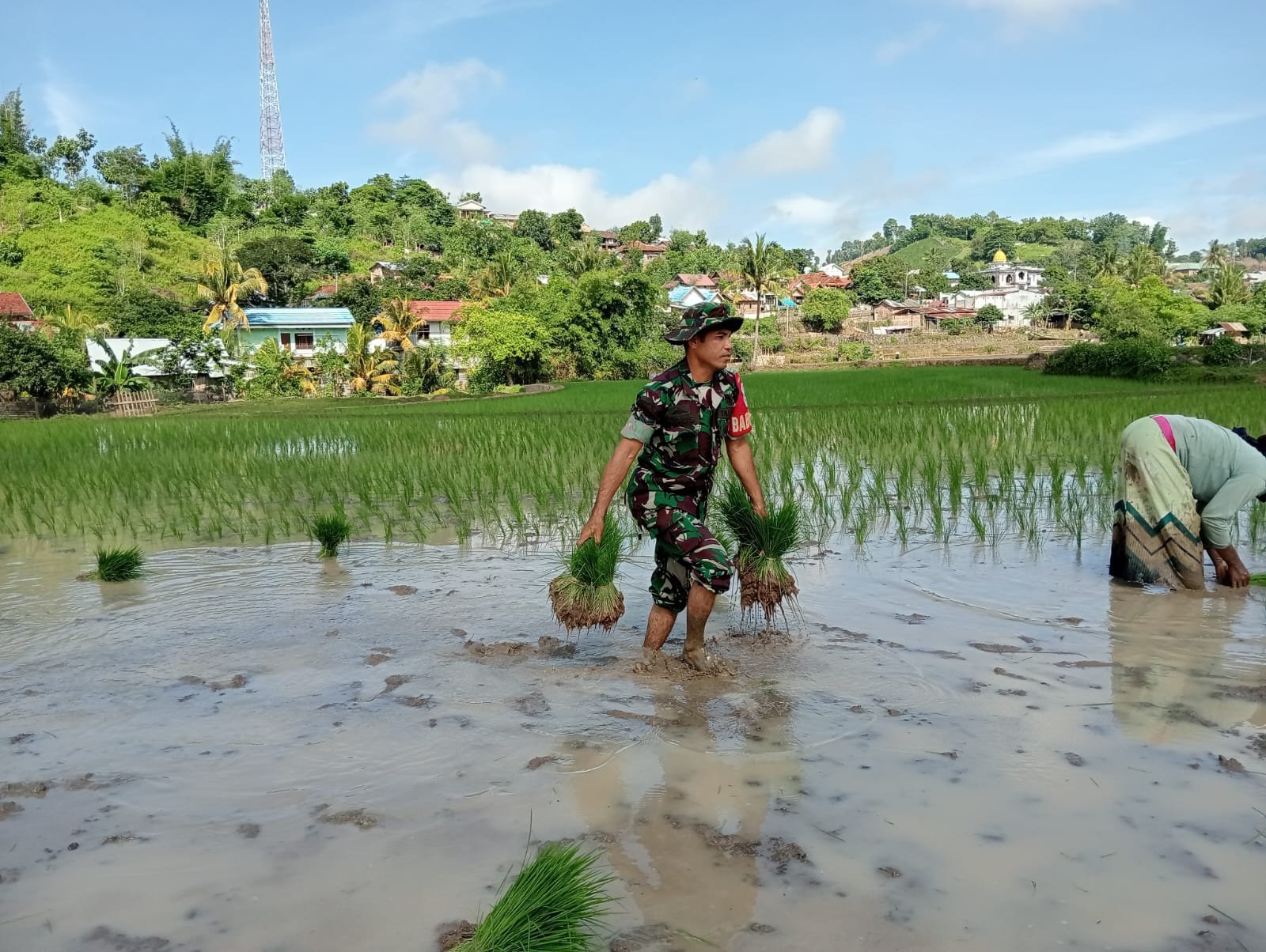 Babinsa Desa Ntori Dampingi Penanaman Padi untuk Mendukung Ketahanan Pangan Nasional