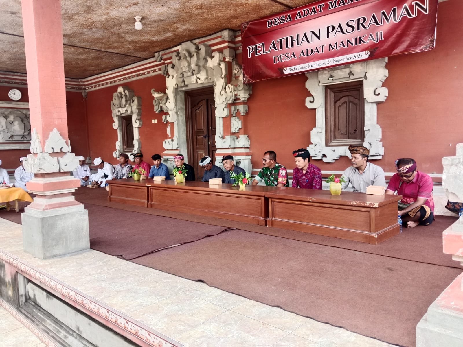 Bangli – Babinsa Desa Peninjoan Koramil 1626-03/Tembuku, Serka I Made Suarnika, menghadiri Pembukaan Pelatihan Pasraman Desa Adat Manikaji yang berlangsung di Balai Adat Manikaji, Desa Peninjoan, Kecamatan Tembuku, Kabupaten Bangli, Rabu (26/11/2025).