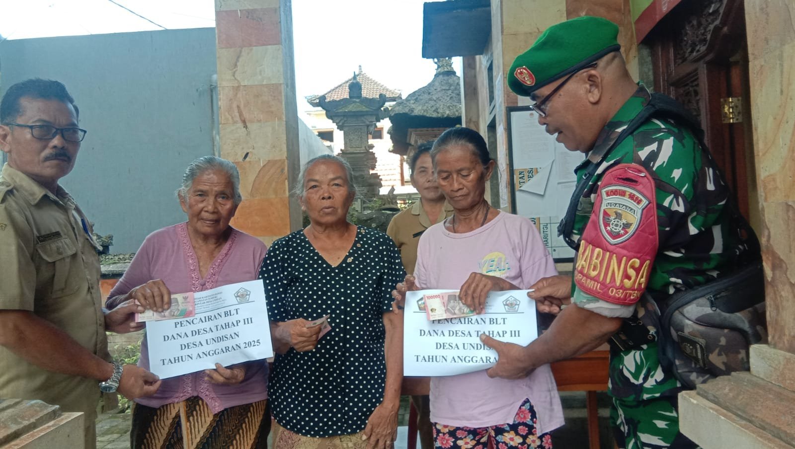 Bangli – Agar penyaluran BLT DD berjalan aman dan tertib Babinsa Desa Undisan Koramil 03/Tembuku Kodim 1626/Bangli Serda I Nyoman Suganda melaksanakan pendampingan Penyaluran (Bantuan Langsung Tunai Dana Desa) BLT-DD Tahap III Bulan Maret kepada warga penerima bantuan bertempat di Kantor Desa Undisan Kecamatan Tembuku Kabupaten Bangli.selasa (11/03/2025).