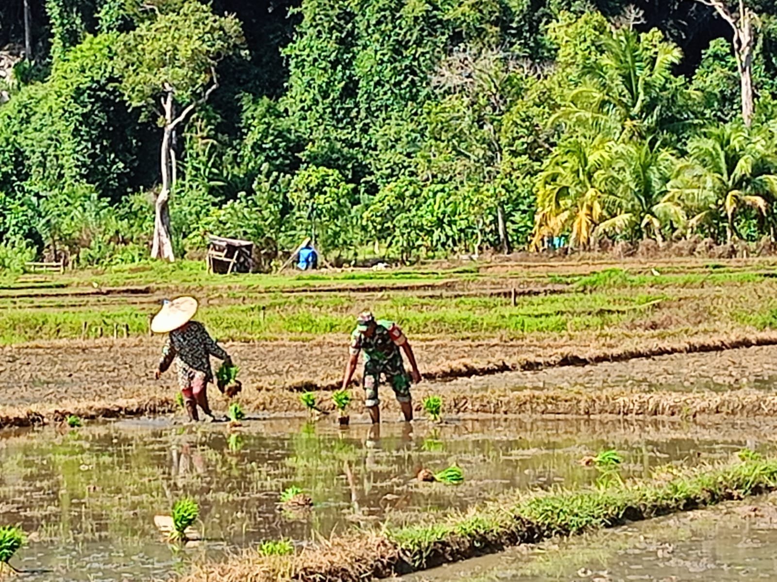 Babinsa Jaya Turun Tangan Bantu Petani, Dukung Proses Tanam Padi di Lam Asan