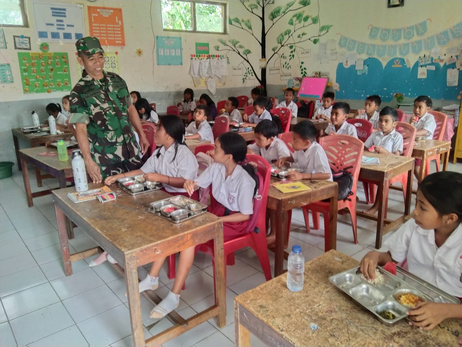 SUMBA BARAT – Pada Selasa, 20 Januari 2026, Serma M. Saidin selaku Babinsa dari Koramil 01/Loli, Kodim 1613/Sumba Barat, melakukan pemantauan dalam penyaluran program Makan Bergizi Gratis (MBG) di Sekolah yang terletak di Desa Kalembu Kuni, Kecamatan Kota Waikabubak. Kegiatan ini bertujuan untuk memastikan agar distribusi makanan bergizi bagi siswa berlangsung lancar dan sesuai dengan ketentuan yang telah ditetapkan.