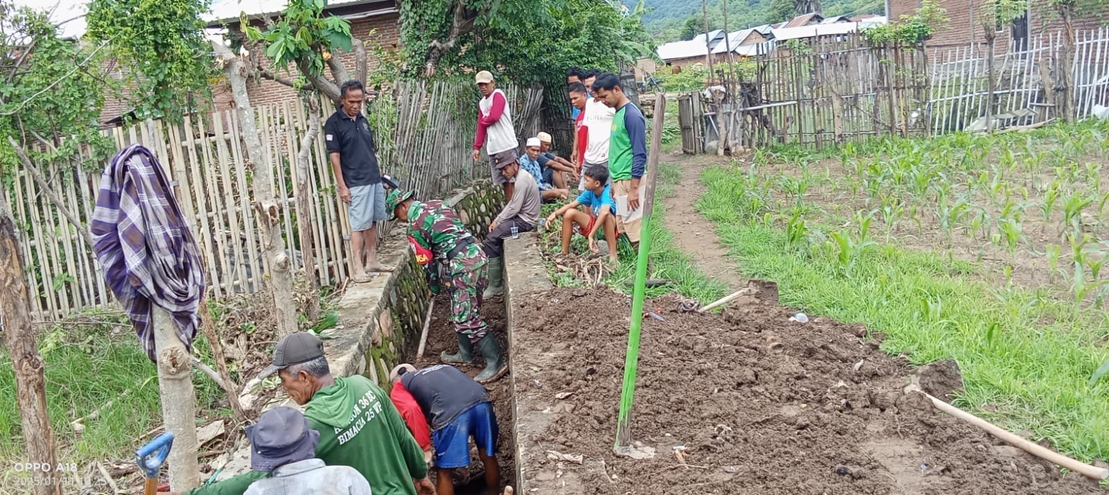 Babinsa Keli Koramil 1608-04/Woha Gelar Gotong Royong Bersihkan Irigasi Bersama Warga