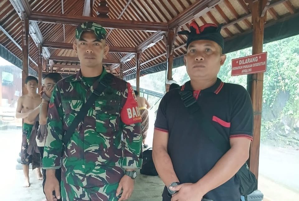 Bangli – Dalam rangka menjaga ketertiban dan kelancaran pelaksanaan upacara keagamaan, Babinsa Kelurahan Bebalang, Koramil 01/Bangli, Kodim 1626/Bangli, Kopda I Nengah Sudarma, melaksanakan monitoring kegiatan Banyu Pinaruh yang dilakukan oleh umat Hindu di Obyek Wisata Spritual Tirta Sudamala Banjar Adat Sedit, Kelurahan Bebalang, Kecamatan Bangli. Minggu (09/02/25).