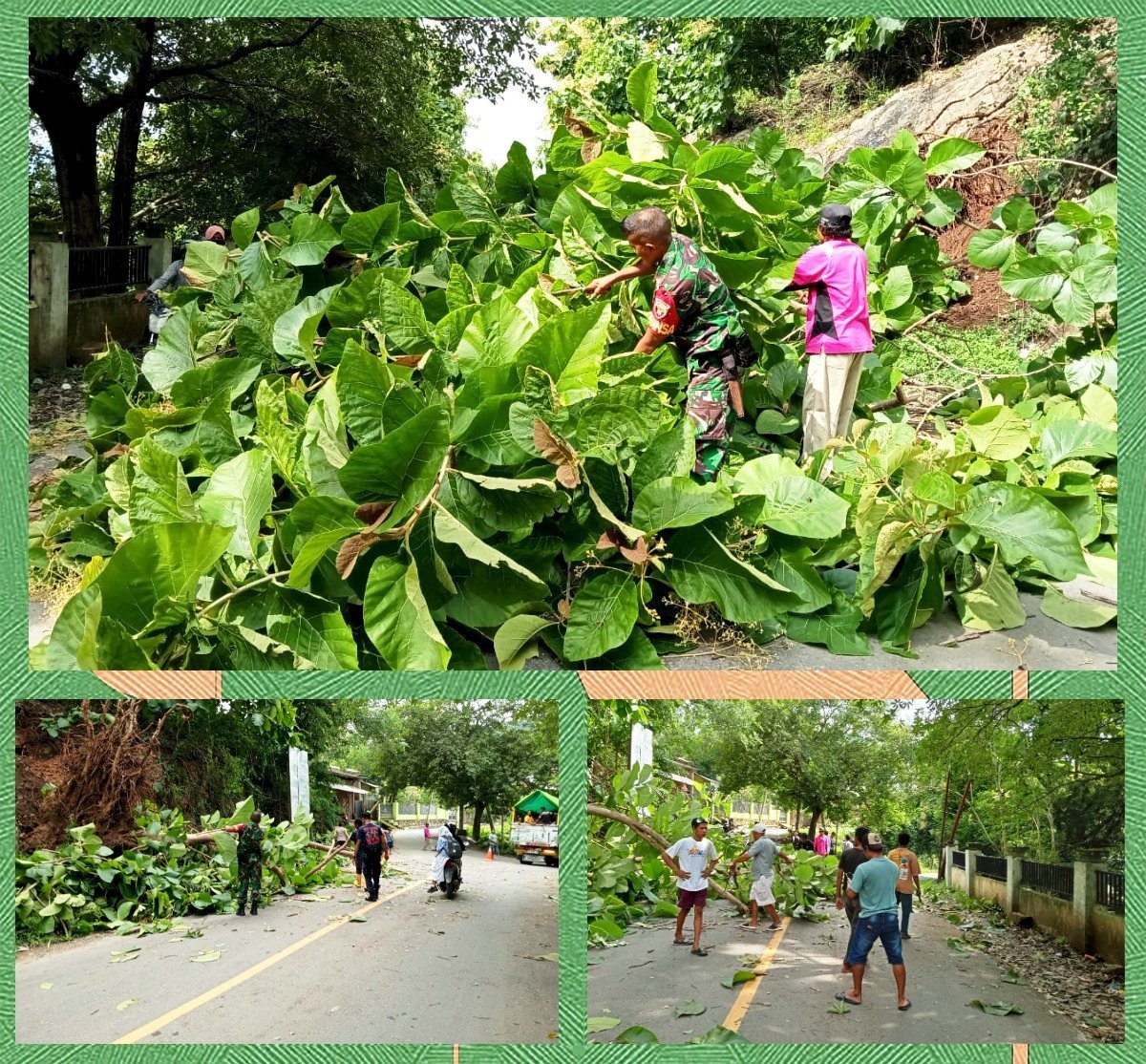 Babinsa Kelurahan Rontu Respons Cepat Atasi Pohon Tumbang di Jalan Adipura